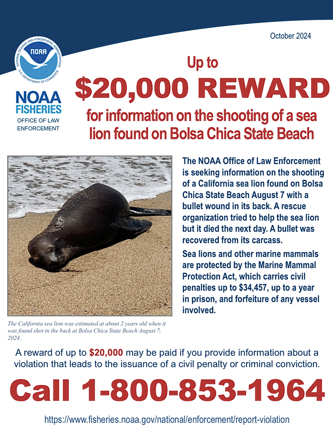 WANTED! $20,000 Reward For Information On The Shooting Death Of A Sea Lion Found On SoCal Beach