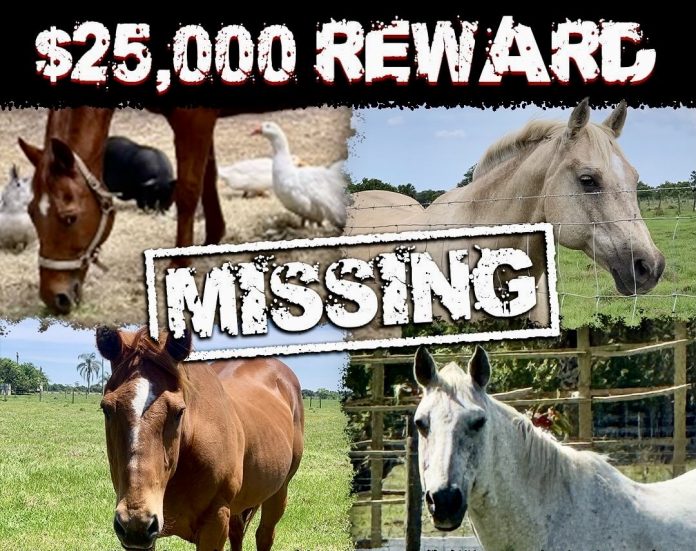 $25,000 Reward Offered By Animal Recovery Mission For Information On Horses Stolen & Likely Sold For Their Meat In Florida