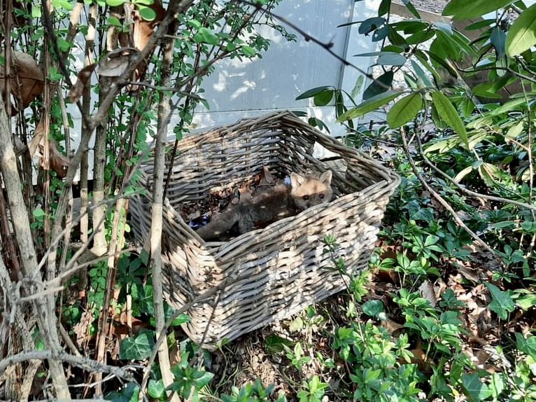 “When trying to reunite wildlife, you want to make the animal visible for the mother to find it, but also make sure that the baby stays warm,” continued Ballena. “The baby could have been placed in the box, but we definitely wanted something that the mom could reach and that the baby could not climb out of. We made sure the location of the basket was safe. If the fox was found in the middle of the street, that would be a different story.”