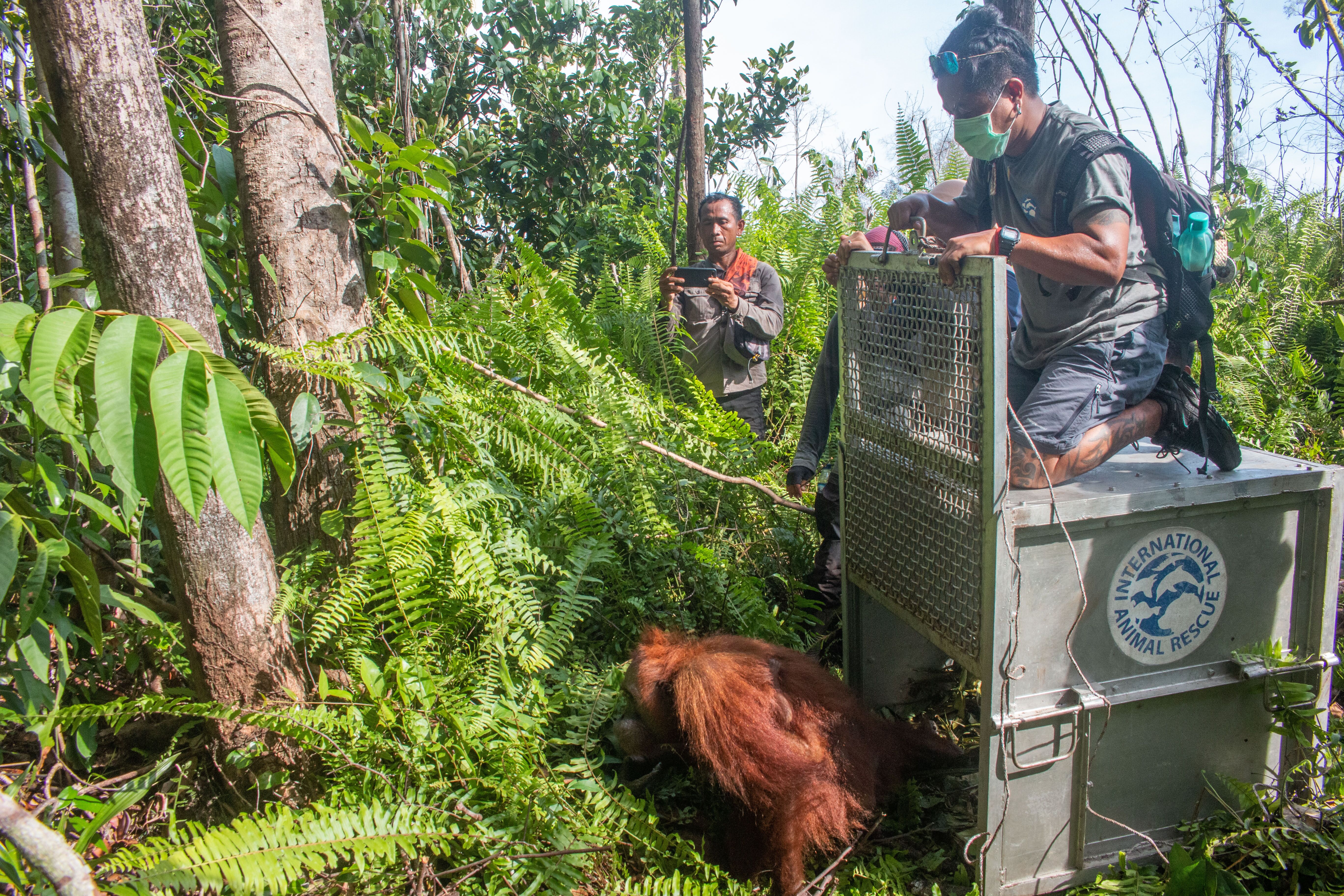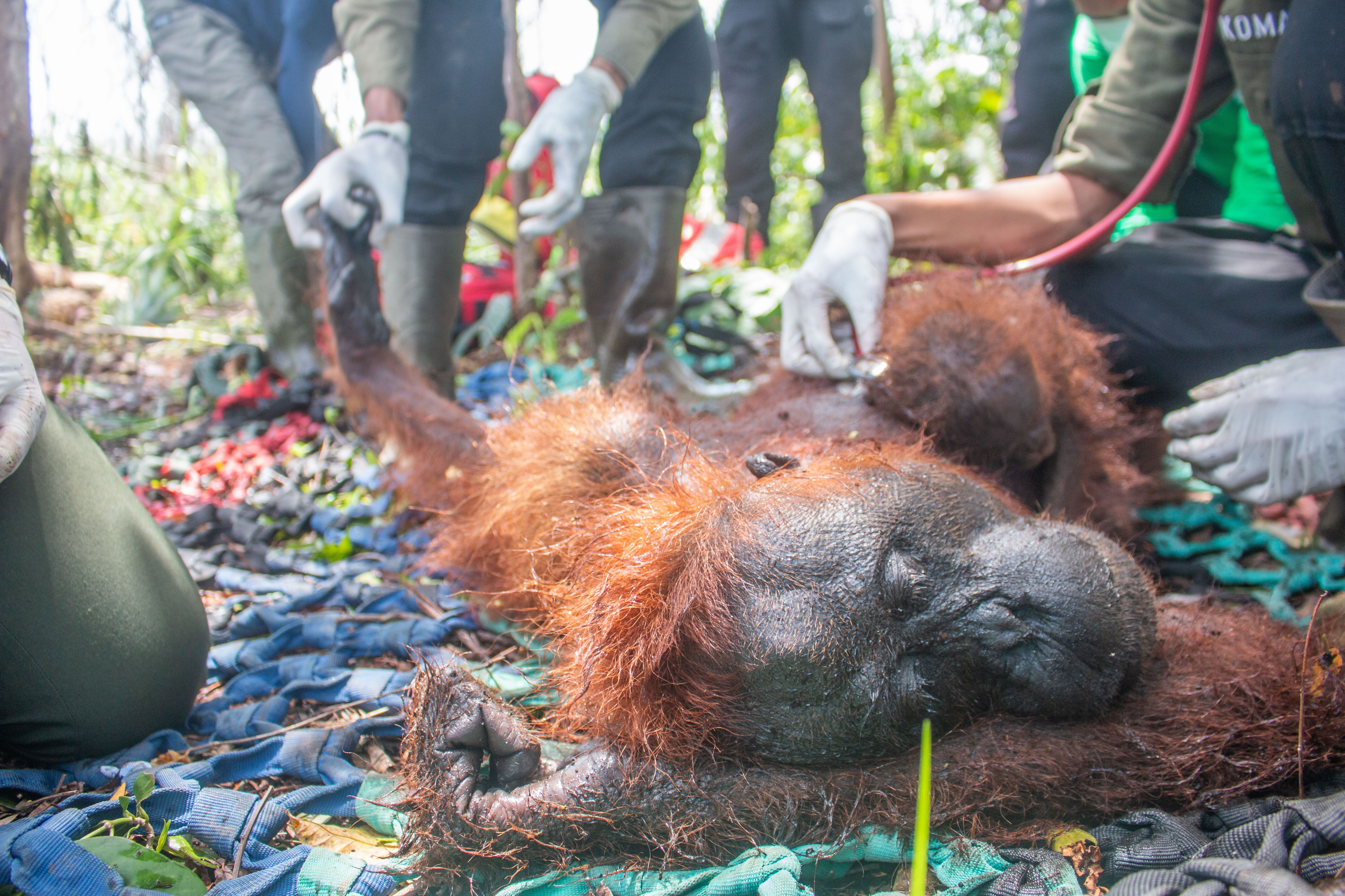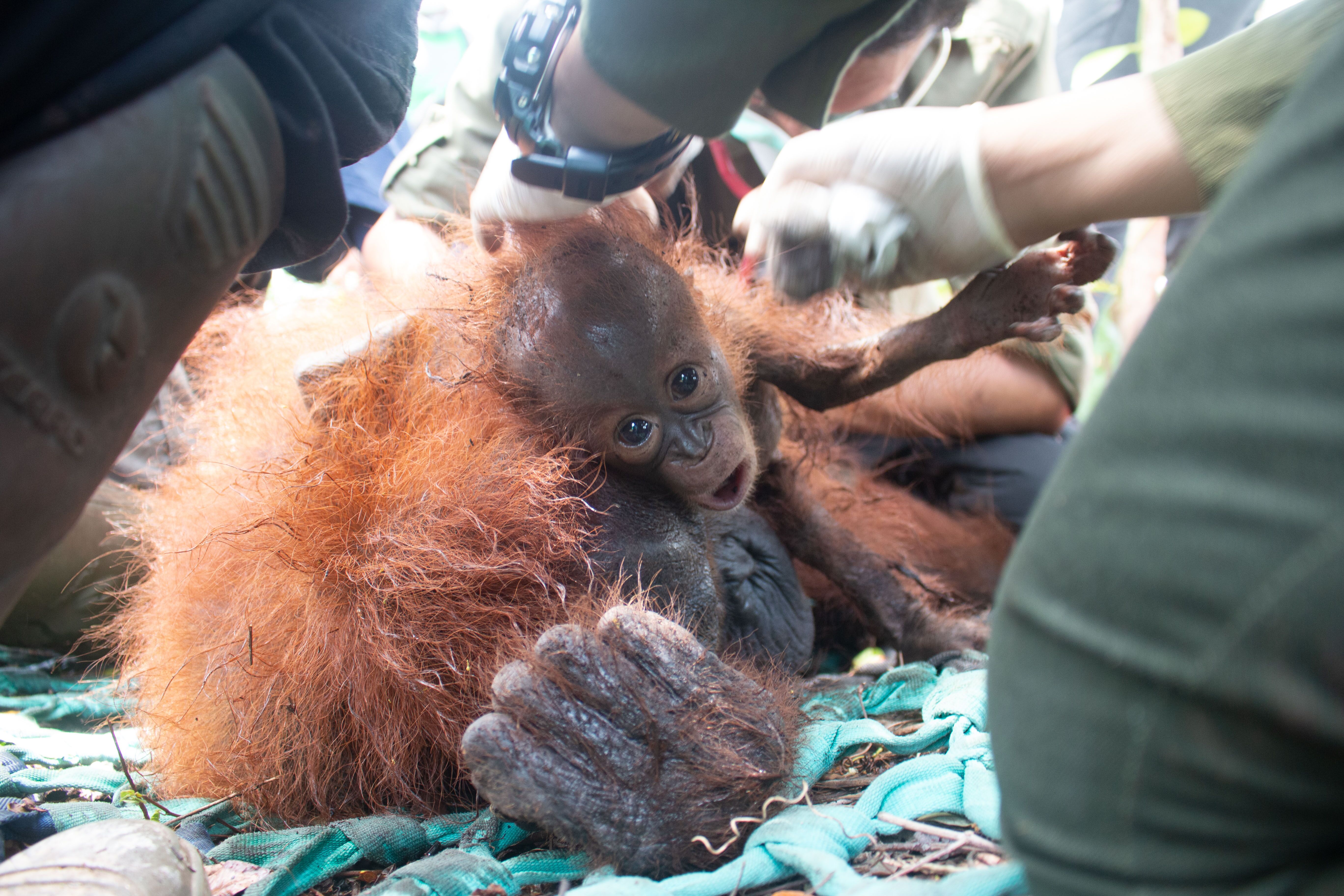 A Mother Orangutan & Her Baby Are Rescued & Relocated After Fire Destroyed Their Forest Home In West Borneo
