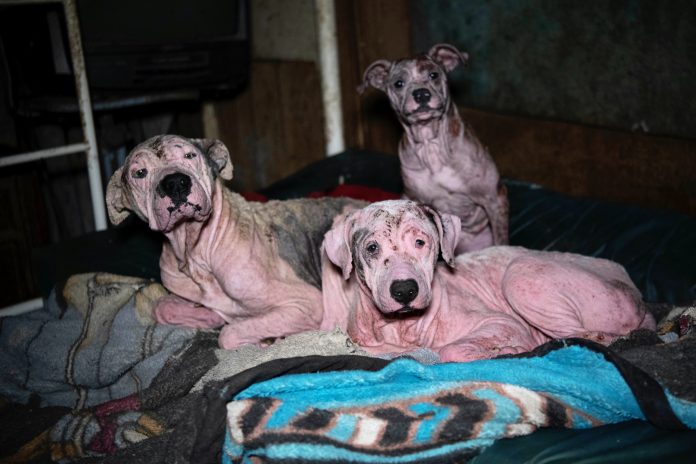 “This is a tragic scene– it is intensely sad to see these dogs suffering in obvious misery and pain,” said Laura Koivula, Deputy Manager of Animal Crimes for HSUS in a statement emailed to WAN. “We are thankful to all of the agencies involved today for working through the rain to get these dogs desperately-needed help.”